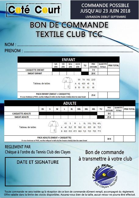 - les formulaires de disponibilité des cours jeune et adulte tennis et padel à renseigner,